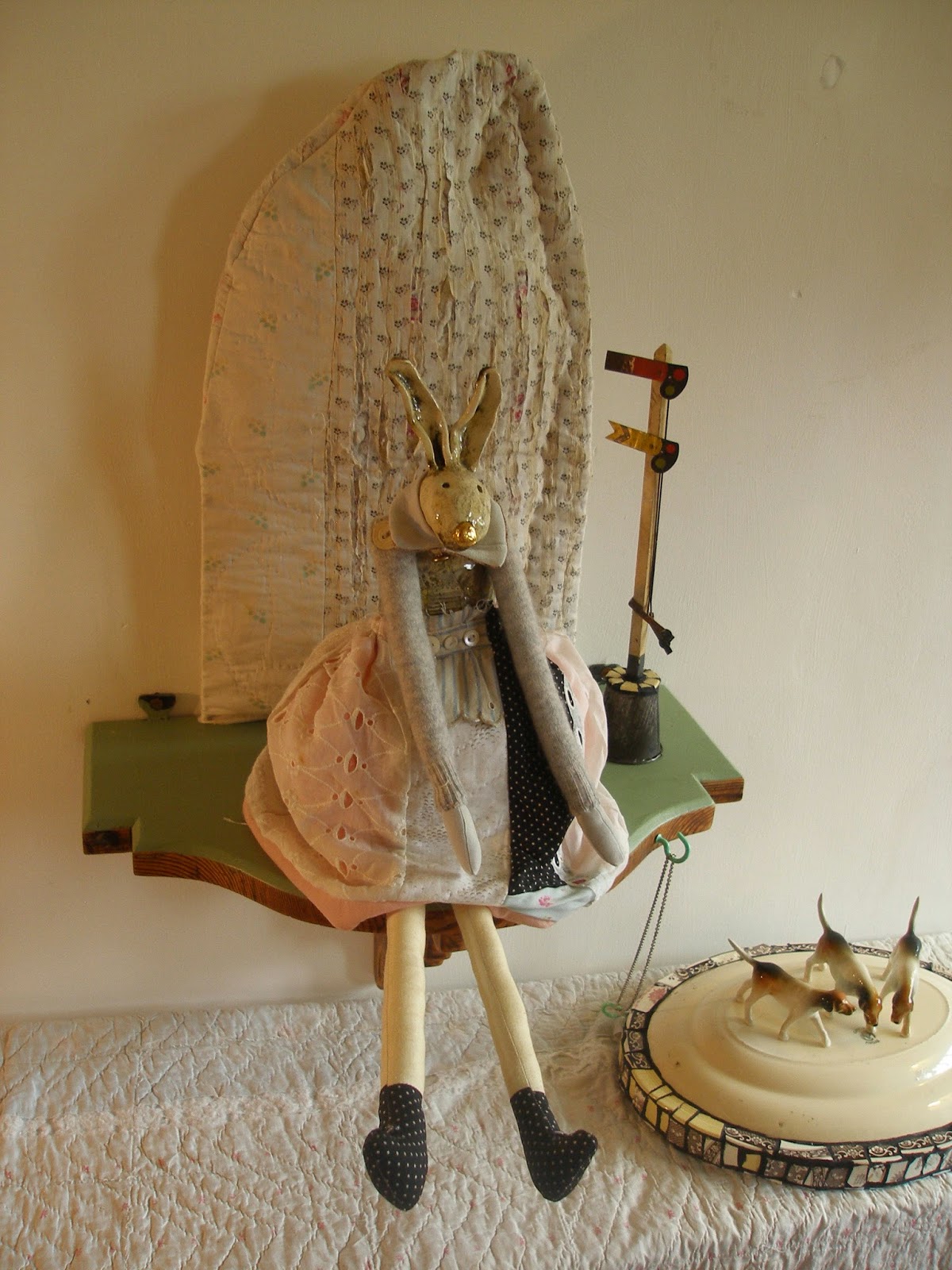 arrives slowly this Winter day. I have been remiss at keeping this blog up to date.Life has taken over with work and pots of paint , upholstery sewn, food and life keeping schedules full and hectic. The festive season is soon to be here and all I can ponder is parcels paper and festive greenery. Baubles glisten awaiting the tree and a hint of excitment in the air. Rabbits are up and on display at Unit Twelve spending time away from home chuffed to bits at winning and award the sit smuggly on their canopied shelf. Sketchbook now needs thoughts and words readying itself for Daphne's Glove the group project for the New Year but wait I jump too far ahead a step back to today a walk round the lake collect the eggs from the farm hunt for holly and ivy to deck the hall and back for mince pies and coffee!